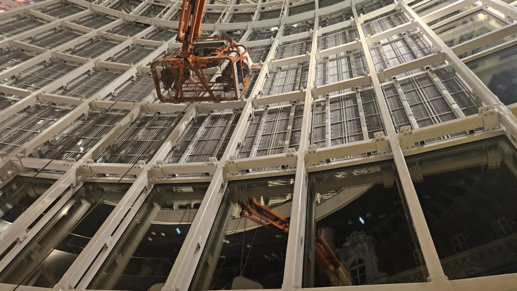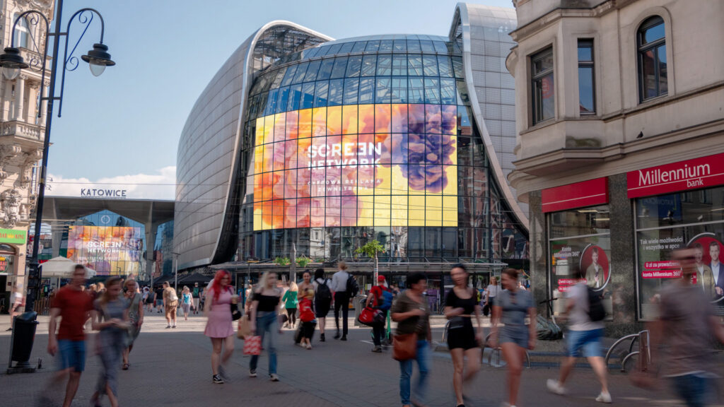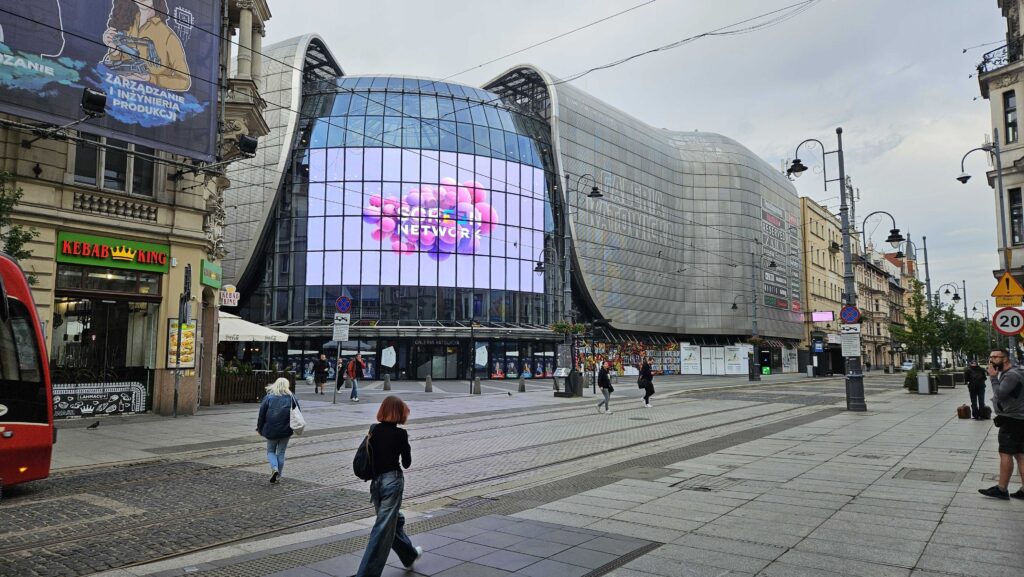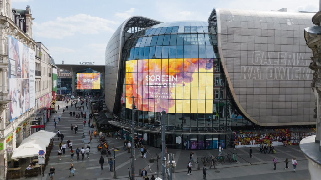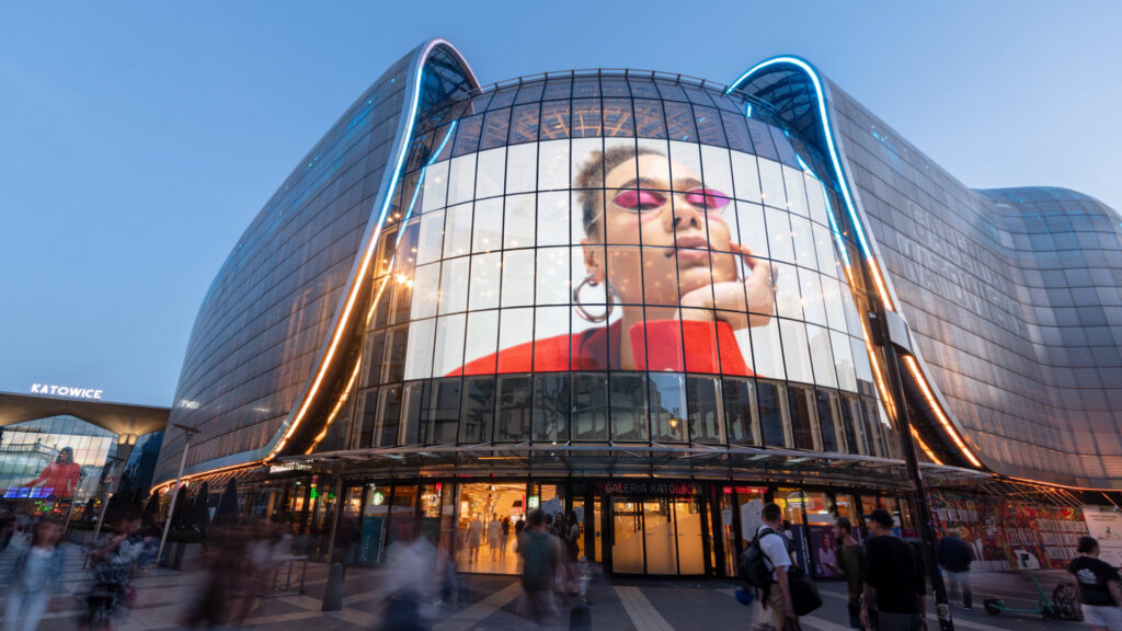 Situated in the city center, the 153 ㎡ large outdoor screen made out of Unilumin’s transparent display UVF 10.4 is mounted on Galeria Katowicka façade, which is one of the most important local commercial facilities.